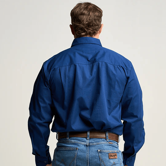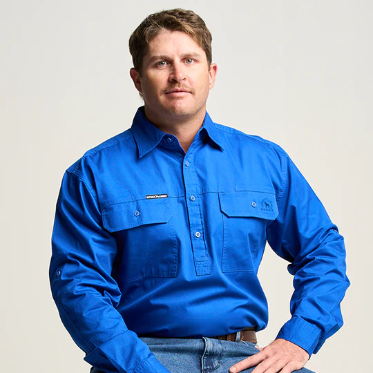 OBCMWS001-ROY KILCOY | Mens Half Button Long Sleeve Work Shirt - Royal